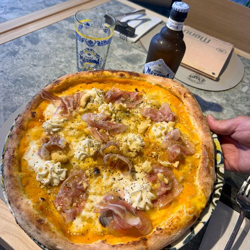 Ingredienti: Salsa di pomodoro, mozzarella, funghi porcini , lonzino artigianale , Datterino rosso , parmigiano